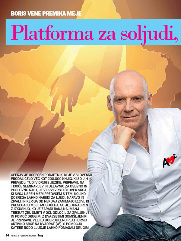 Mediji o gibanjuTV OddajePotovanje duše: Od spočetja do starševstva | Intervju s Tjašo Pavček | TV Vaš kanalIntervju z Eriko Kostanjšek in Borisom Venetom | TV Vaš kanalIntervju s Petrom Ostrežem in Borisom Venetom | TV Vaš kanalIntervju z Janezom Hudovernikom in Borisom Venetom | TV Vaš kanalIntervju s Katjo Tajč | TV Vaš KanalEkskluzivni intervju z Borisom in Mojco Vene | TV Vaš kanalČlankiVrba, s cesto uničena zibelka slovenske kulture? Prava dobrota ne pozna meja; njen jezik je univerzalen, njen objem pa brezmejen S srcem in predanostjo za podporo škofjeloške šole F.E.N.I.K.S Z novim avtom bodo pomagali najhuje bolnim Vsak otrok si zasluži vsaj drobno veselje! - Jana, Marec 2024 Platforma za soljudi, živali in naravo - Suzy, Februar 2024